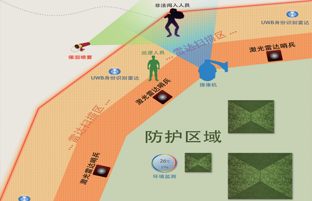 采用激光精準(zhǔn)定位技術(shù),實(shí)現(xiàn)厘米級精準(zhǔn)定位,對入侵者的軌跡進(jìn)行跟蹤、實(shí)時(shí)距離顯示